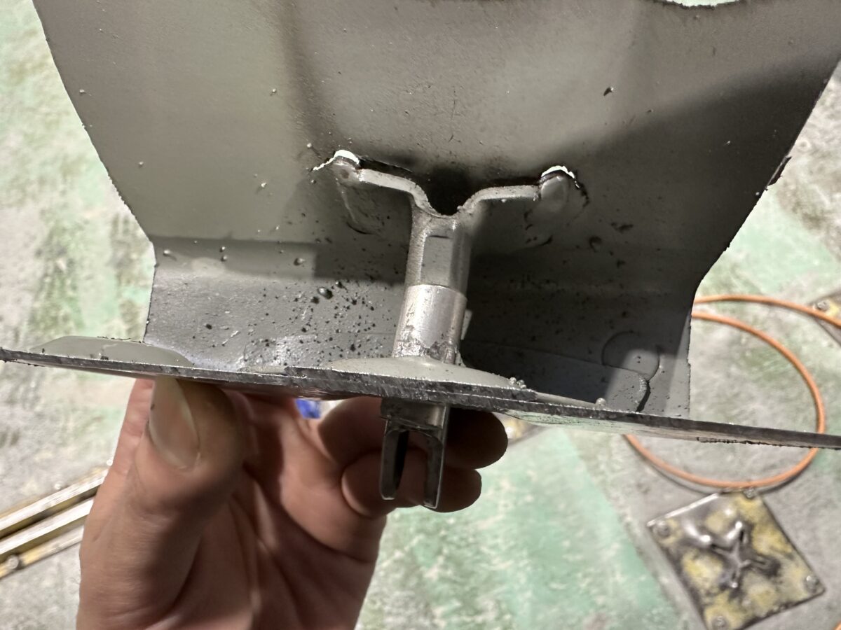 溶接のビード部分が前後とも裂けています。後側は溶接が完全に外れてブラケットが浮いていて、前側はかろうじて繋がっている状態です。