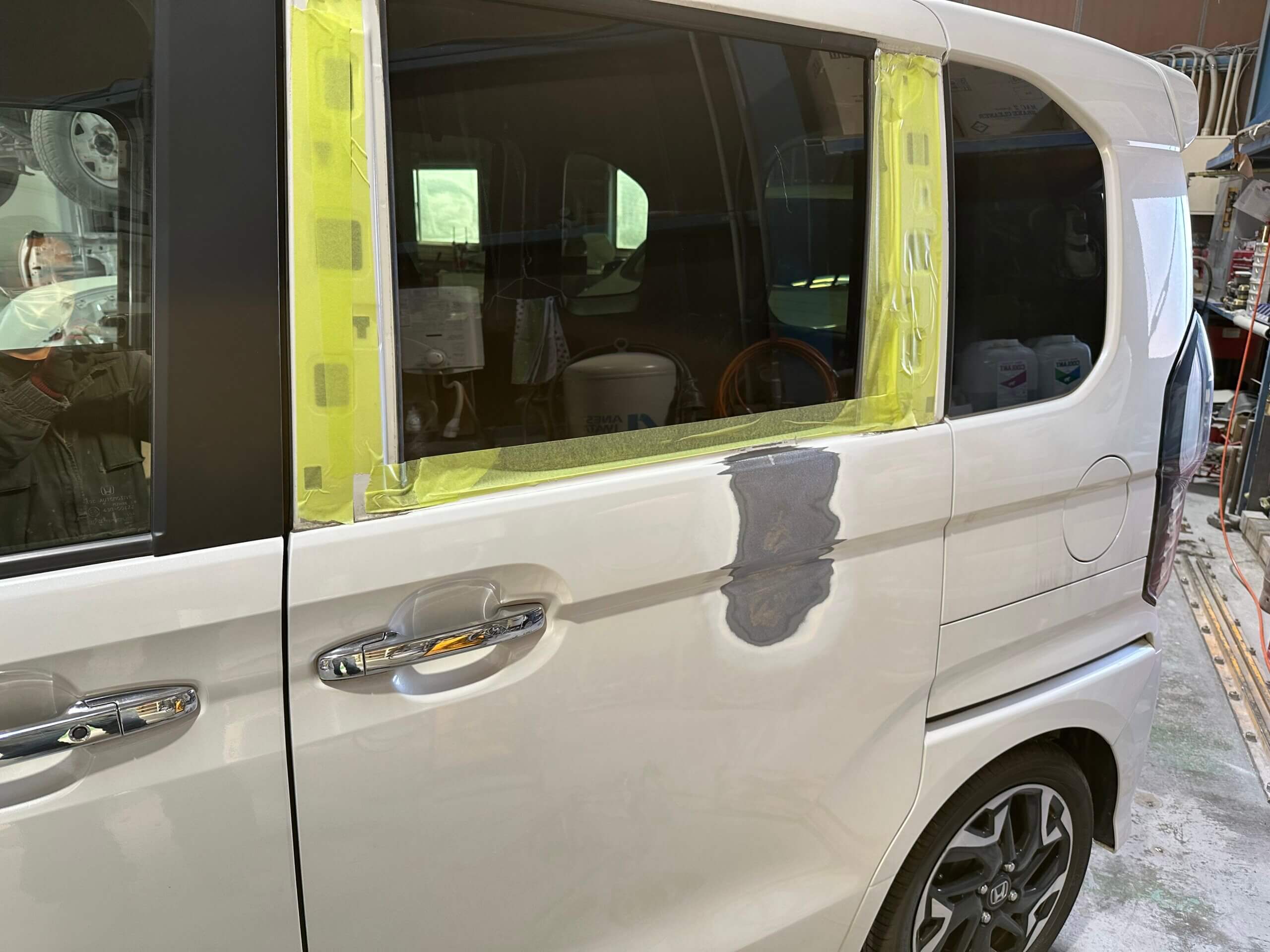 左スライドドアの損傷でN-BOXの入庫です。