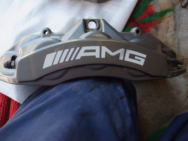 | 修理部位・内容 | エンブレムのカスタムとブレーキキャリパーの塗り替えを行いました。 エンブレムはシルバーメッキから艶消しの黒・赤へ塗りかえしました。※メッキへの塗装はブログへ詳しく載せていますのでそちらをご覧ください。 ブレーキキャリパーの色の塗り替えはタイヤを外し、ブレーキキャリパーを車から取り外します。キャリパー自体も分解しました。しかしキャリパーを分解して塗装する場合は、オイルを完全に抜いてから作業しなけばなりません。なぜなら、残ったブレーキオイルが少しでもたれ落ちると新しく塗った塗膜を侵してしまうからです。そのために時間がかかってしまいます。 そして塗装をすると文字が消えてしまうので、あらかじめ文字データを取っておいたマスキング用シールを使って塗装します。キャリパーを組み直し取り付け、タイヤも元に戻し完成です。 |
