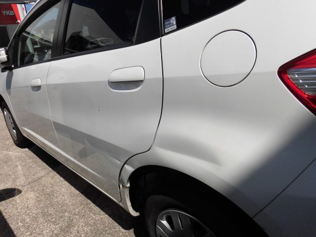 施工前 施工後 メーカーホンダ車名・モデルフィット修理部位・内容左クオーター・左リアドア修理期間10日間 左後ろ側というのはどうしても皆さんが擦ったり、傷つけてしまいやすい個所ではあります。擦り傷というには凹みもあるため、直さずに乗るには目立ってしまいます。